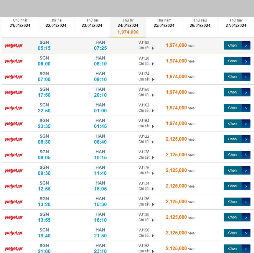 Hãng Vietjet Air VJ120 06:00 1,974K