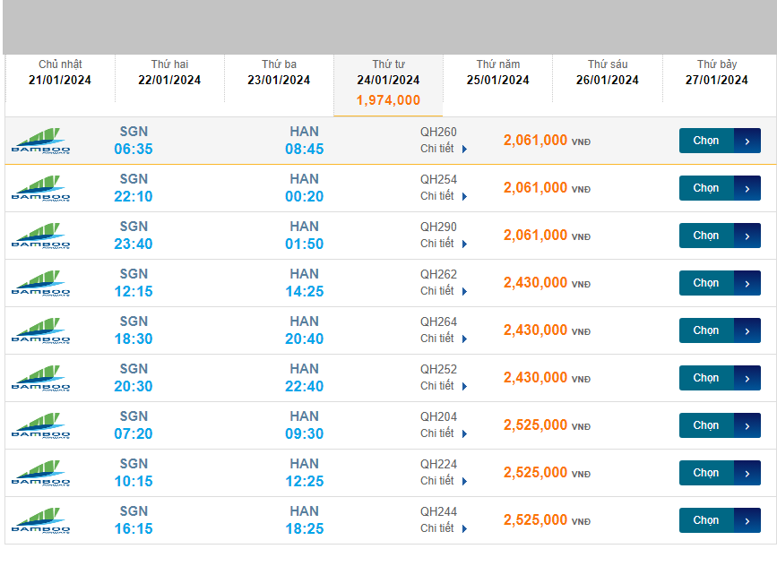 Hãng Bamboo Airway QH260 06:35 2,061K