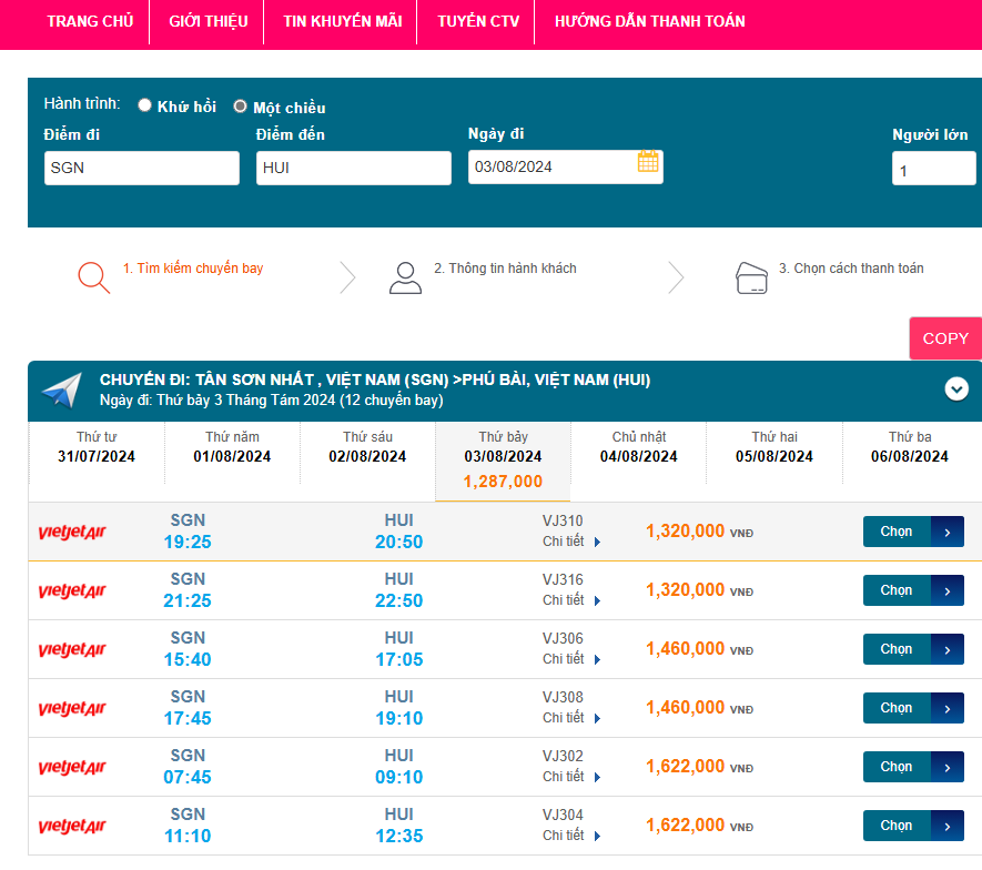 Tân Sơn Nhất (SGN) - Phú Bài (HUI) 03/08/2024