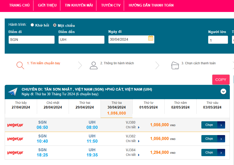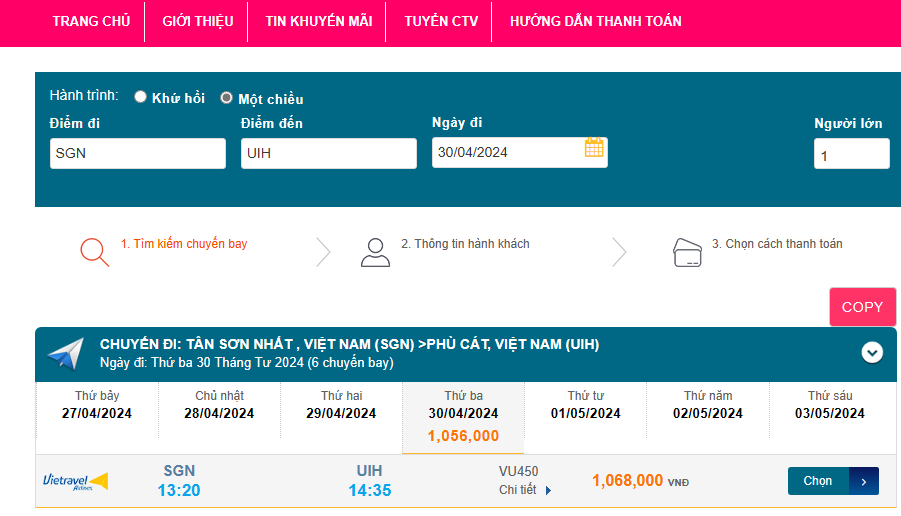 Tân Sơn Nhất (SGN) - Phù Cát (UIH) 30/04/2024