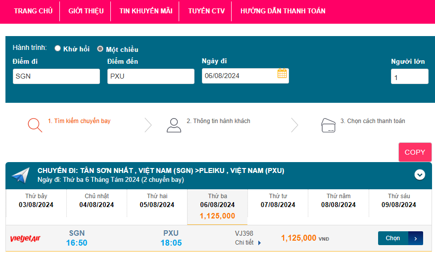 Tân Sơn Nhất (SGN) - Pleiku (PXU) 06/08/2024