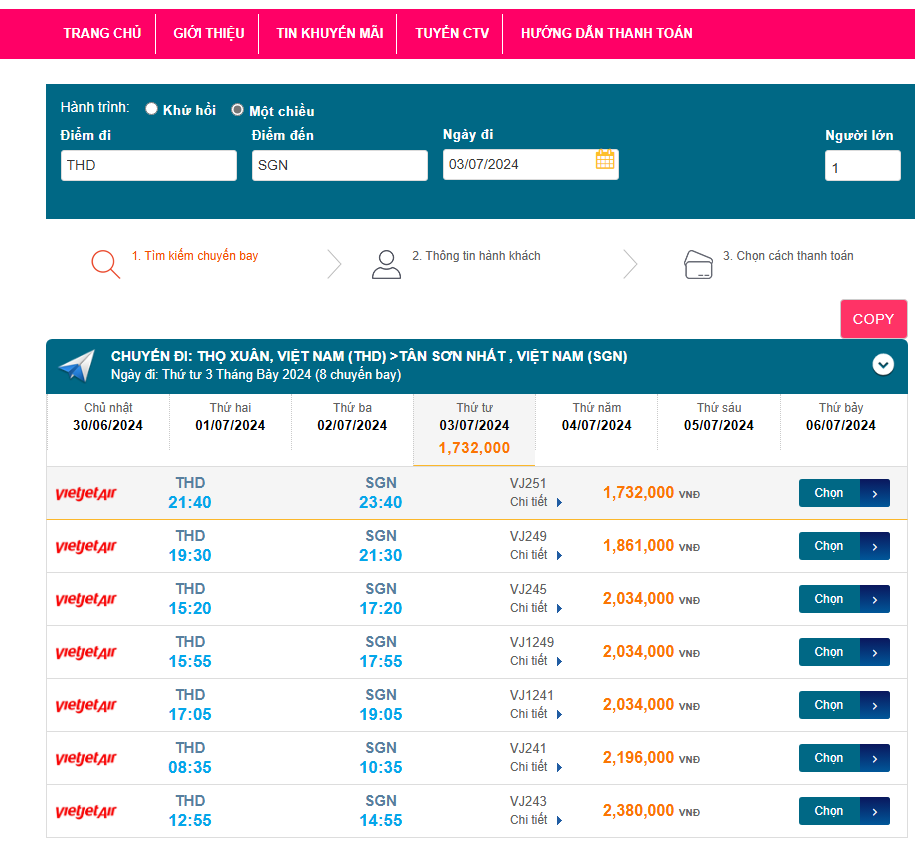 Thọ Xuân (THD) - Tân Sơn Nhất (SGN) 03/07/2024