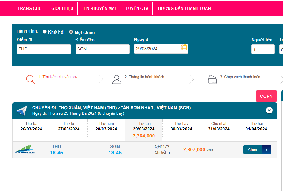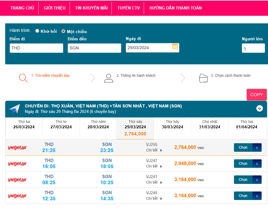 Thọ Xuân (THD) - Tân Sơn Nhất (SGN) 29/03/2024