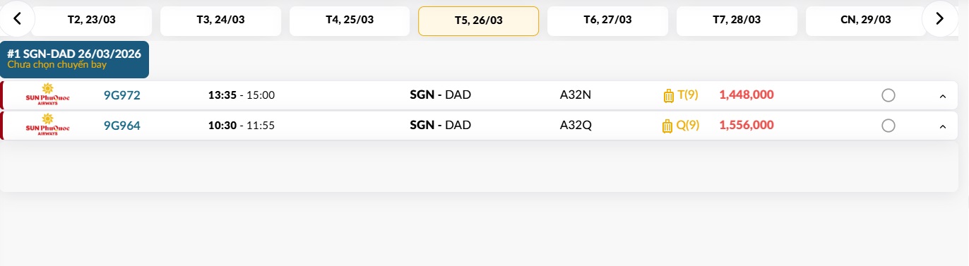 TP. Hồ Chí Minh (SGN) - Đà Nẵng (DAD) Thứ năm 26/03/2026