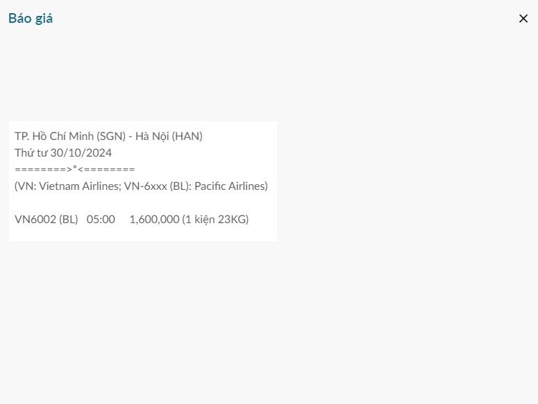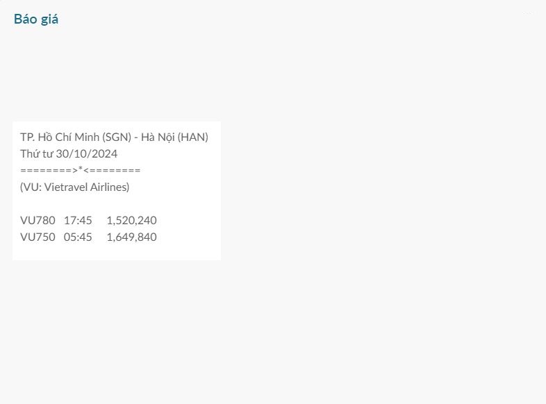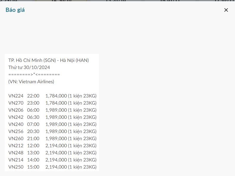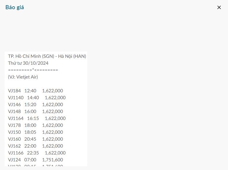 TP. Hồ Chí Minh (SGN) - Hà Nội Thứ tư 30/10/2024