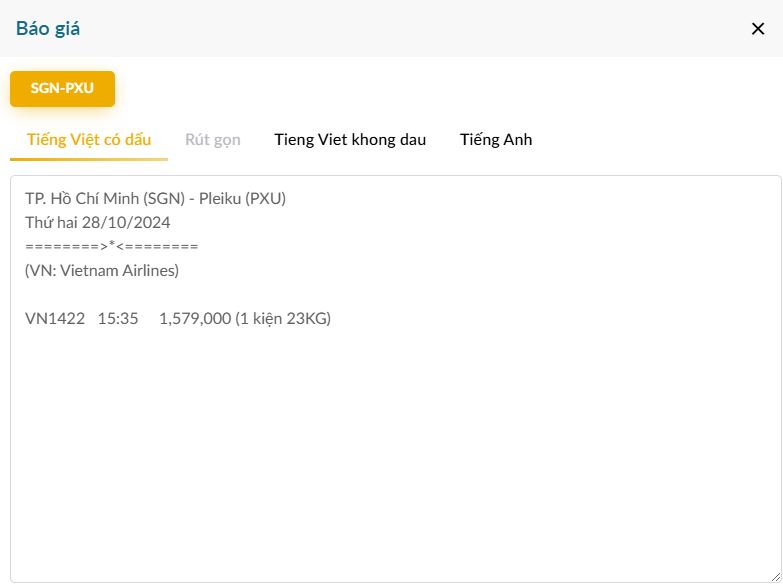 TP. Hồ Chí Minh (SGN) - Pleiku (PXU) Thứ hai 28/10/2024