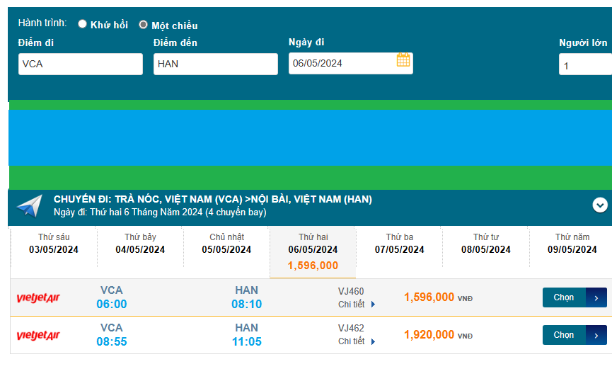 Trà Nóc (VCA) - Nội Bài (HAN) 06/05/2024