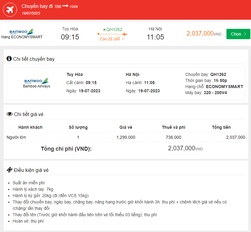 Tuy Hòa Đến Hà Nôi 19/07/2023