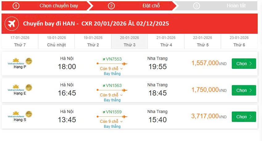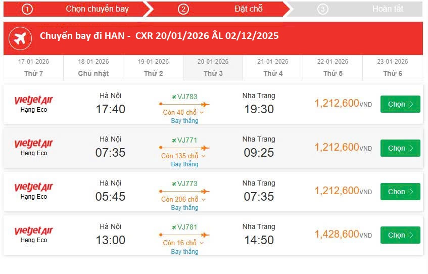 Vé máy bay Hà Nội - Nha Trang 20/01/2026
