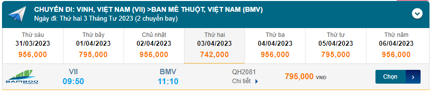 Vinh (VII) Đến Ban Mê Thuột (BMV) 03/04/2023